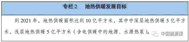 到2021年,地熱供暖面積達到10億平方米,其中中深層地熱供暖5億平方米,淺層地熱供暖5億平方米。生物質能清潔供暖,到2021年,生物質能清潔供暖面積達到21億平方米,其中:農林生物質熱電聯產供暖面積10億平方米,城鎮生活垃圾熱電聯產供暖面積5億平方米,生物質成型燃料供暖面積5億平方米,生物天然氣與其他生物質氣化供暖面積超1億平方米。